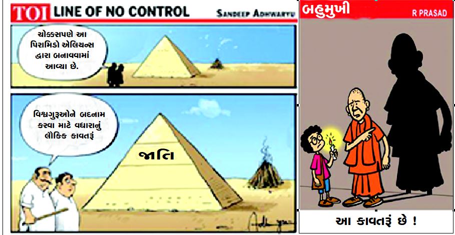 હાથરસમાં થયેલી ગેંગરેપ અને હત્યાની ઘટનાનો ફાયદો ઉઠાવી ભારતમાં તોફાનો કરાવવા આંતરરાષ્ટ્રીય કાવતરૂં ઘડાયું હોવાના ઉત્તરપ્રદેશની યોગી આદિત્યનાથ સરકારના દાવા અંગે કાર્ટૂનિસ્ટોને પોતાનું કૌશલ્ય બતાવવા માટે ખોરાક મળી ગયો છે. અત્રે ઉલ્લેખનિય છે કે, યોગીેએ દાવો કર્યો હતો કે, ભાજપ વિરોધી લોકો આંતરરાષ્ટ્રીય નાણાંકીય સહાય દ્વારા ભારતમાં જાતિ આધારિત અને ધર્મ આધારિત રમખાણો કરાવવા માંગે છે. રાષ્ટ્ર વિરોધી અને સમાજ વિરોધી લોકોને ઉત્તરપ્રદેશમાં થઈ રહેલો વિકાસ પચી રહ્યો નથી, માટે તેવો તોફાનોને હાથો બનાવી અસ્થિરતા પેદા કરવા માંગે છે. અસામાજીક તત્વો ભાજપ અને દેશ વિરૂદ્ધ કાવતરૂં ઘડી રહ્યાં છે. જો કે હવે કાર્ટૂનિસ્ટો અવનવા કાર્ટૂન બનાવી યોગીના આ દાવાની હાંસી ઉડાવી રહ્યાં છે. વિવિધ અખબારો અને ખાસ કરીને અંગ્રેજી અખબારોમાં ઉત્તરપ્રદેશના મુખ્યમંત્રીના દાવાની મજાક બનાવવામાં આવી રહી છે. ચોટદાર કાર્ટૂન અને તેમાં કટાક્ષપૂર્ણ લખાણ લખી કાર્ટૂનિસ્ટો યોગીની થિયરીને નકારી રહ્યાં છે. અત્રે ઉલ્લેખનિય છે કે, હાથરસમાં ૧૯ વર્ષીય દલિત યુવતી પર ઠાકુર સમાજના ચાર લોકો દ્વારા સામૂહિક બળાત્કાર ગુજારી તેની પર ક્રૂરતા આચરવામાં આવી હતી. જેથી તેને સારવાર માટે હોસ્પિટલમાં દાખલ કરવામાં આવી હતી. જ્યાં તેનું મોત થતાં દેશભરમાં રોષ ફાટી નીકળ્યો હતો અને પીડિતાને ન્યાય અપાવવા લોકો પર સડકો પર ઊતરી આવ્યા હતા તેમજ જનતા દ્વારા આ મામલે યોગી સરકાર પર પણ પ્રહારો કરાયા હતા અને જણાવાયું હતું કે, ઉત્તરપ્રદેશમાં યોગી સરકાર બળાત્કારો અટકાવવામાં નિષ્ફળ રહી છે.